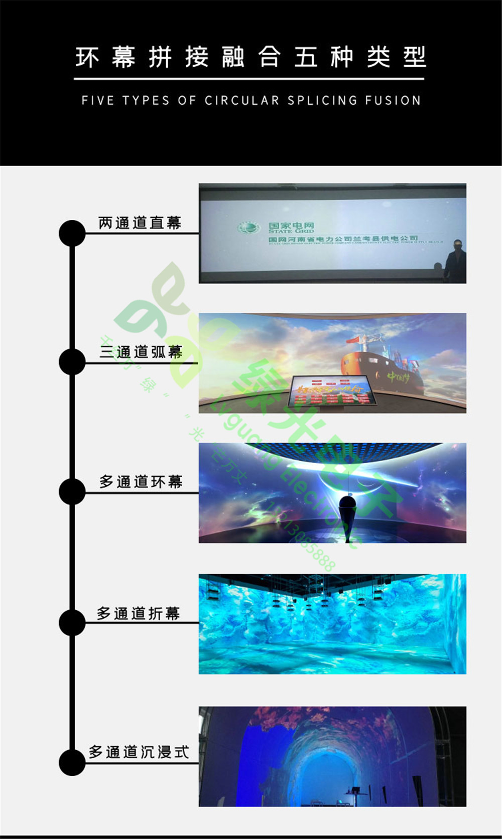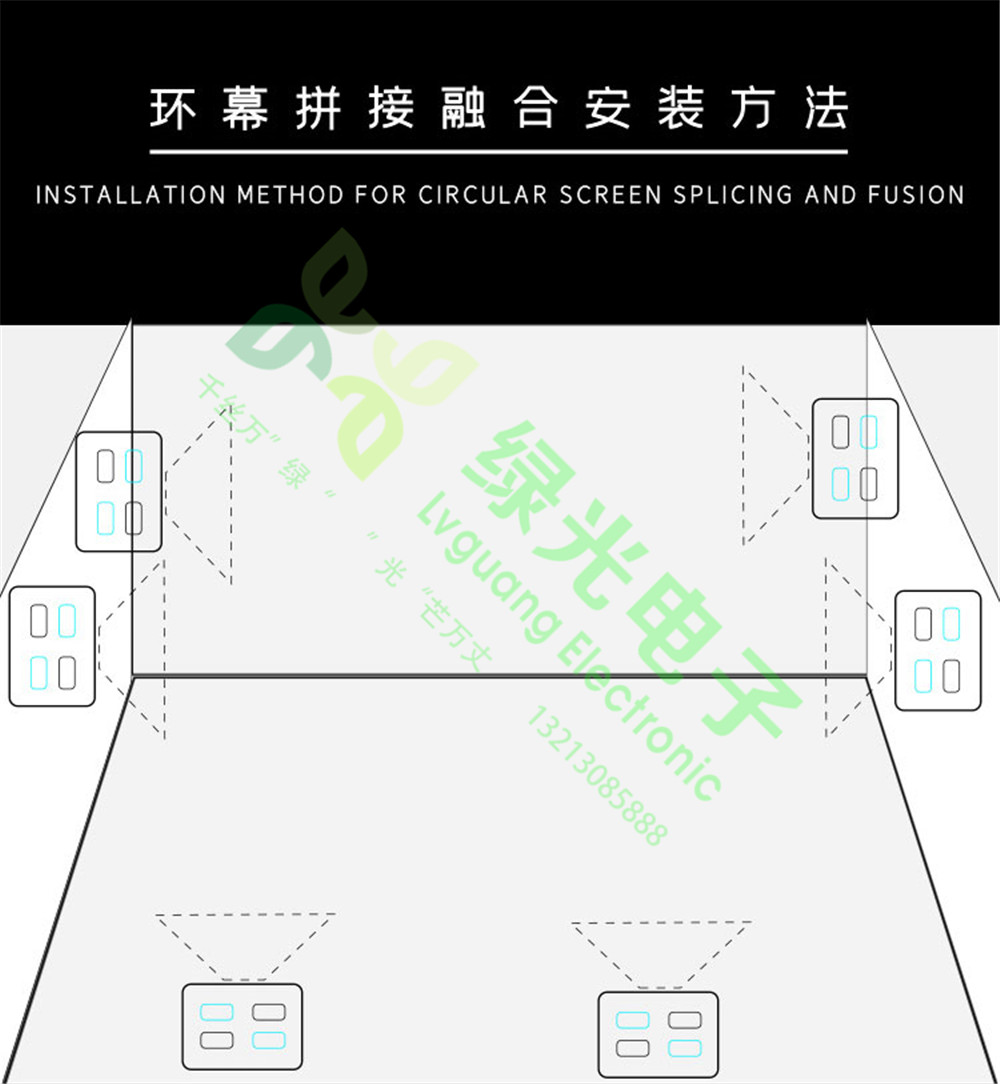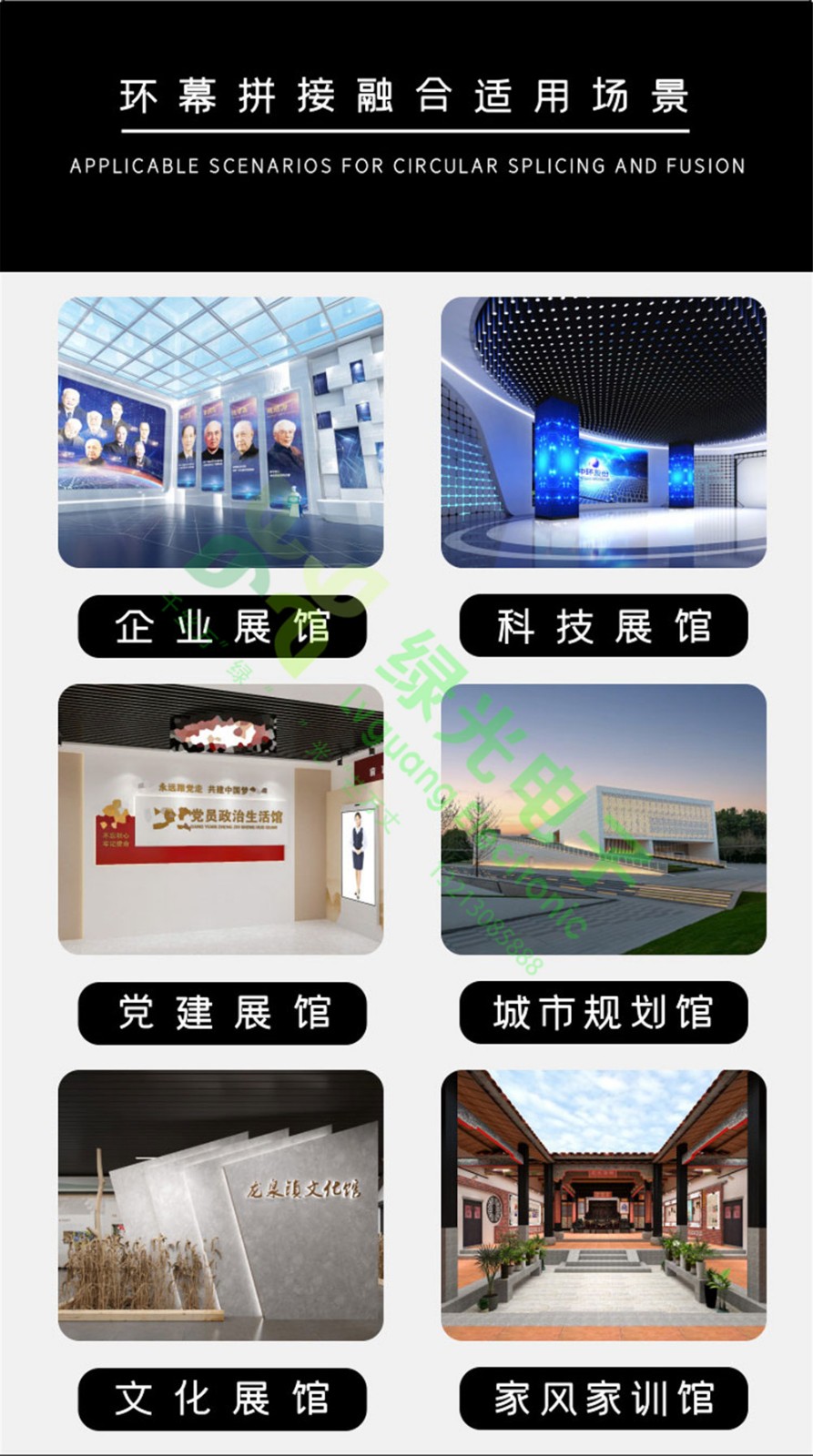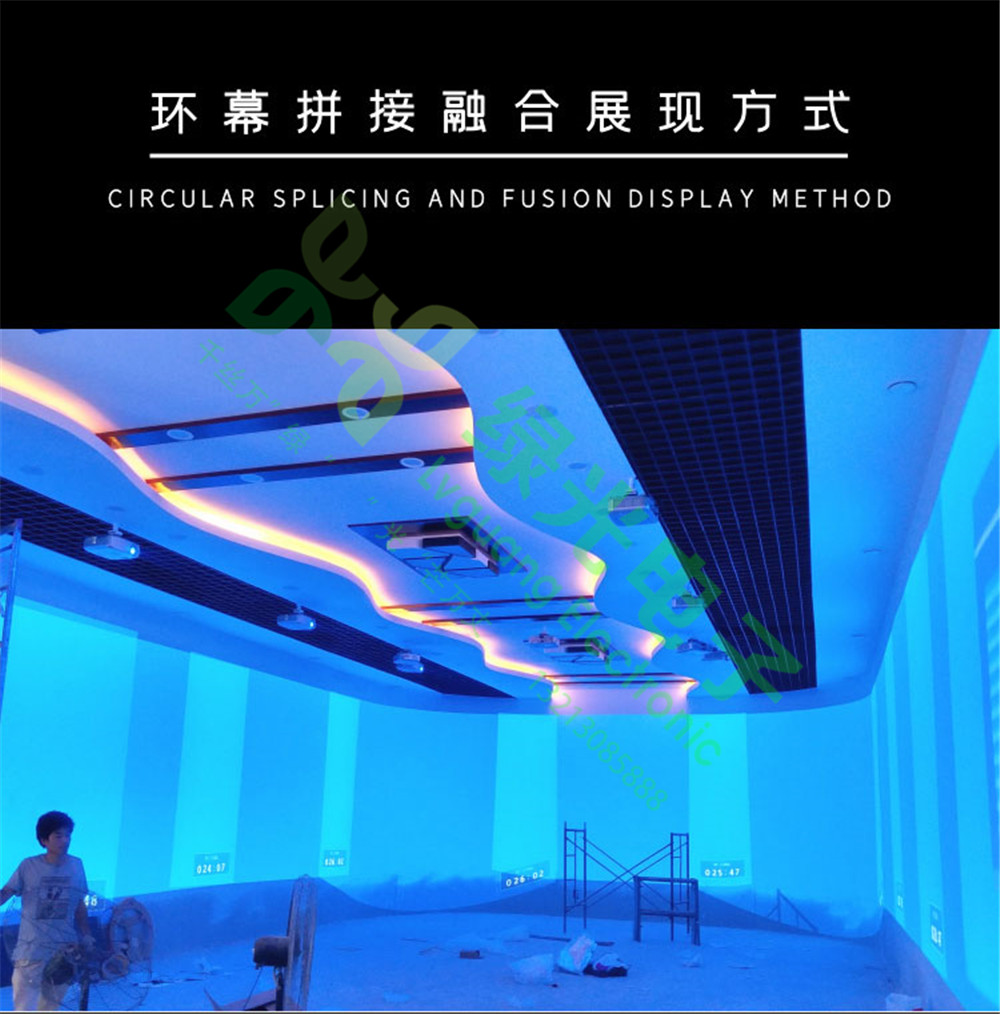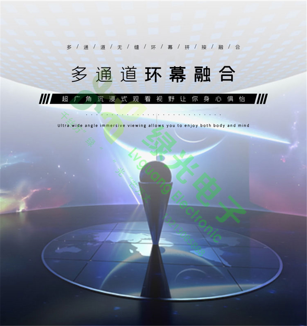 环幕影院其外观为环绕式巨幅银幕呈现,它的画面展示由多组投影系统组成而成,为了保证投影画面的之间的无缝拼接,实现更大投影面积、更高的画面质量,需要使用多通道融合拼接技术,才能在银幕上实现完整的投影放映内容,观众也能感受到360度无死角的视觉效果,仿佛置身于影片场景中。