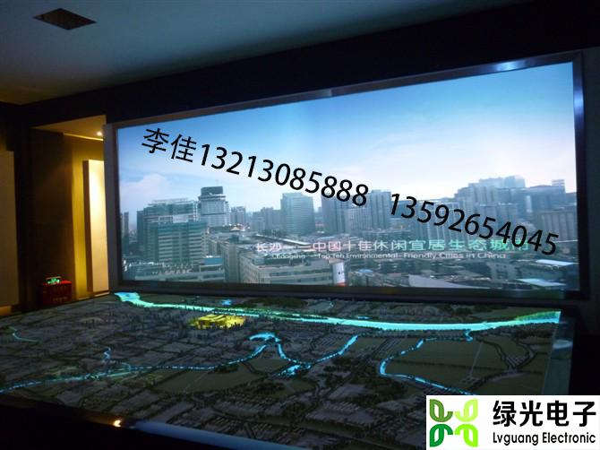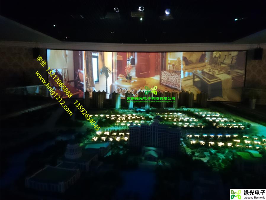 具体地说,就是将模拟的三维立体影像精确投影到实体模型的相应位置,例如:可将三维的汽车行走视频投影到沙盘的实际道路上,与实体沙盘互动展示的演示相映成辉,使沙盘的演示效果更加形象、生动。借助投影显示设备或其他显示设备把计算机上的三维或四维图形图像模型显示到台面上,还可以是桌面投影、地面投影、墙面壁投影显示等,参观者以自然的手势动作与大屏幕投影的三维模型交互作用,多方位多层次浏览查询,从而快速地获取简明、精确、优美、逼真的动态信息。