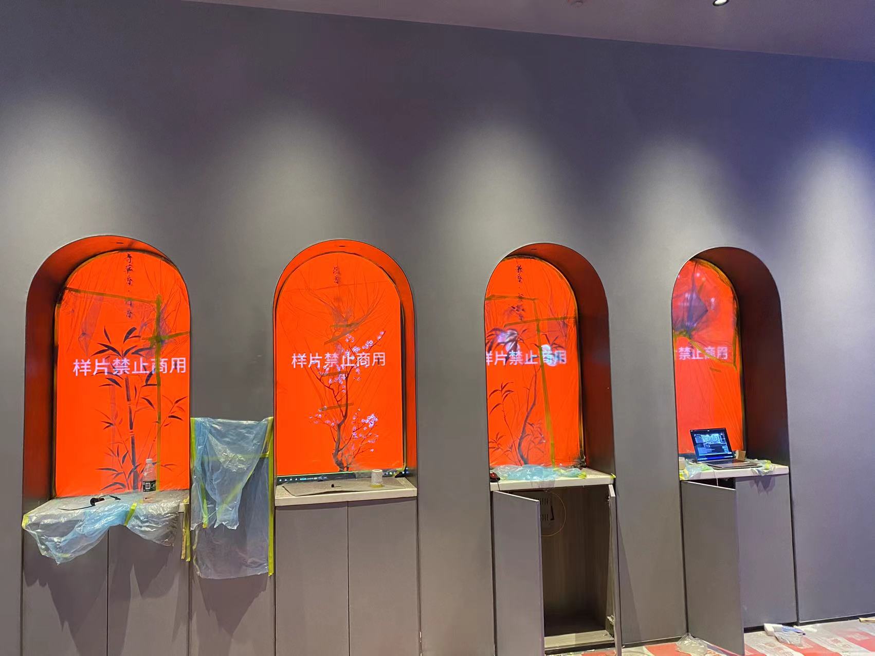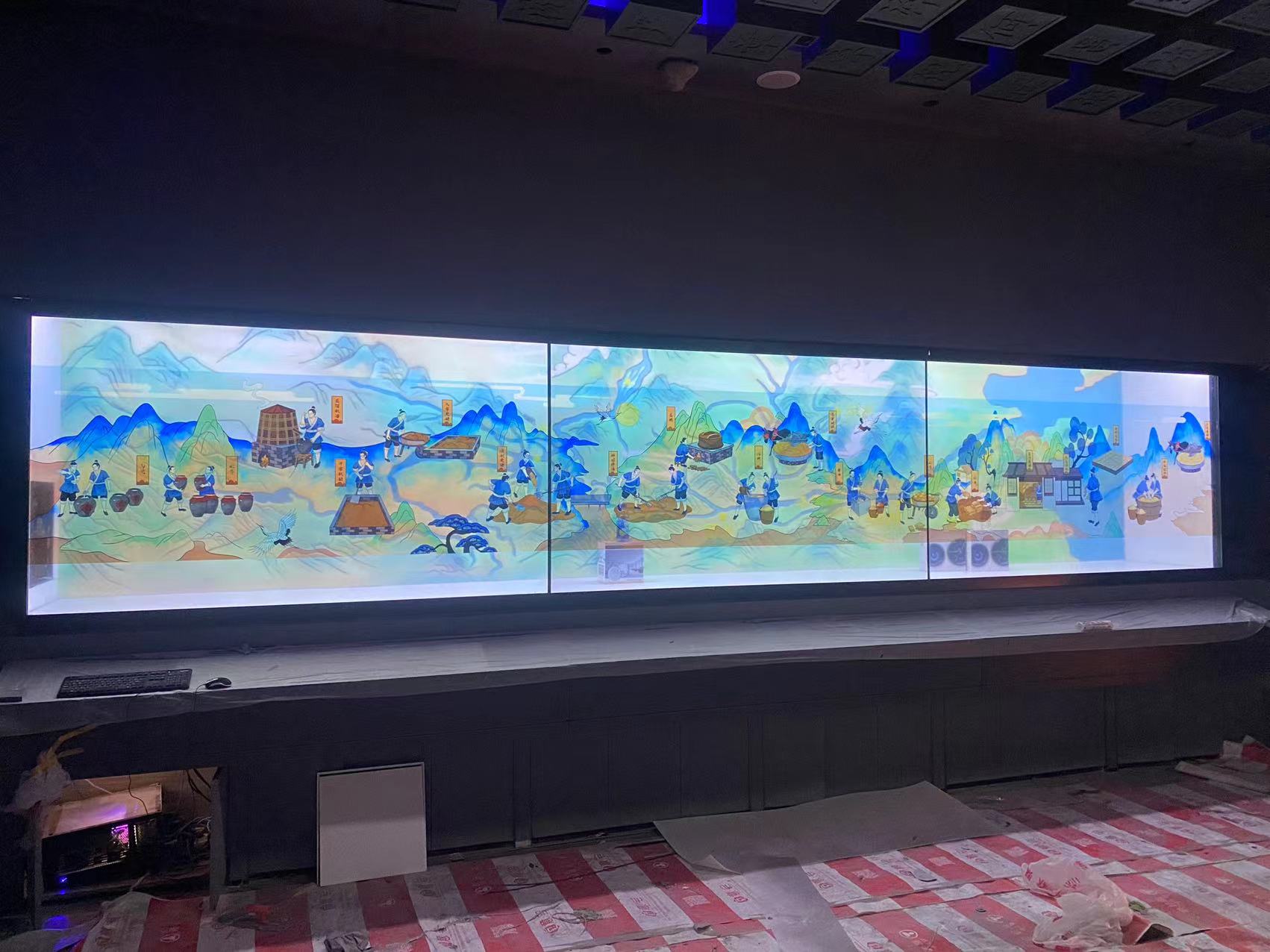 河南茅台展厅,茅台多媒体设备,茅台文化馆,98寸三台透明屏拼接,弧形投影+雷达互动,电子沙盘+24节气,郑州茅台多媒体文化展示馆。