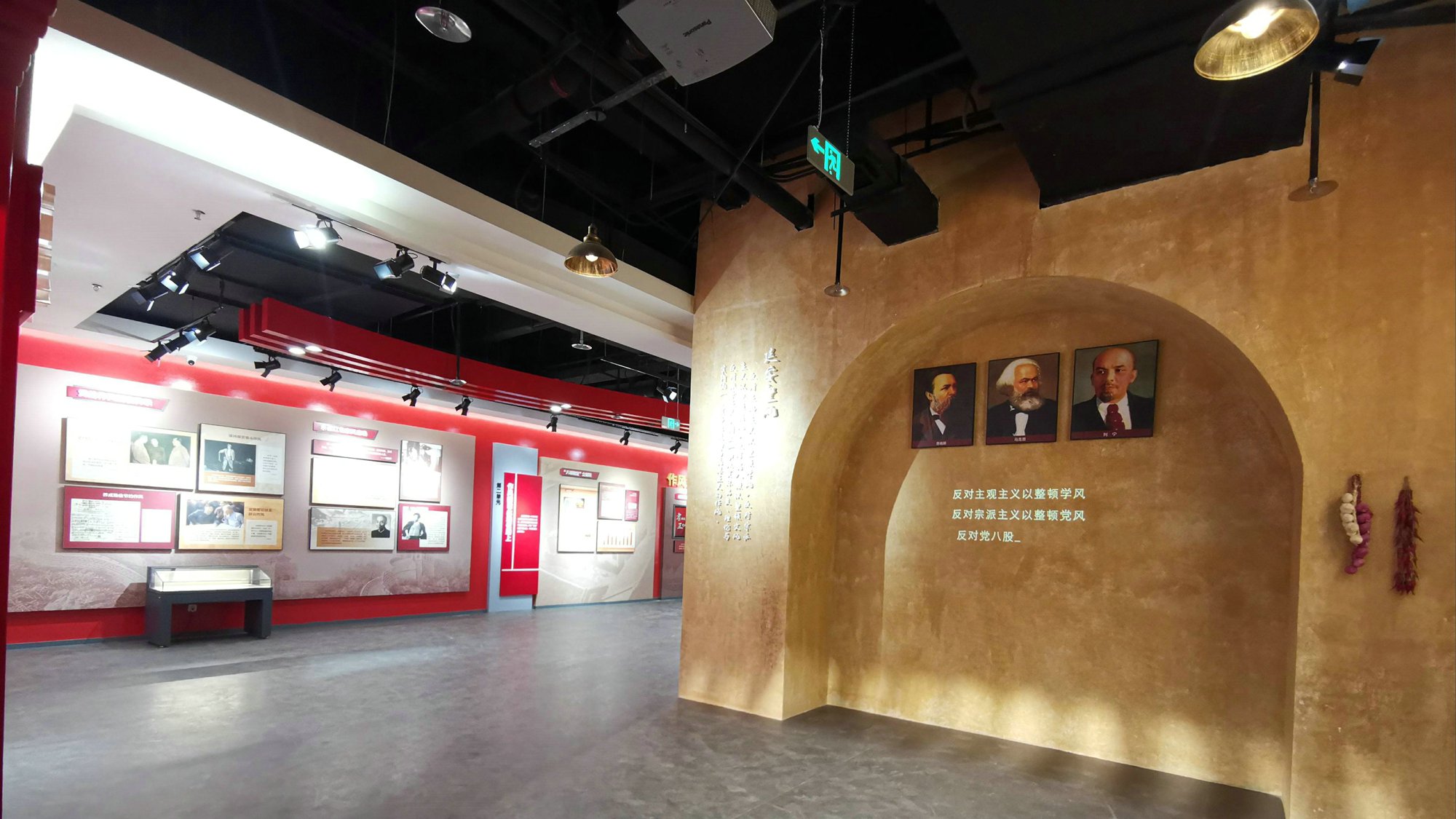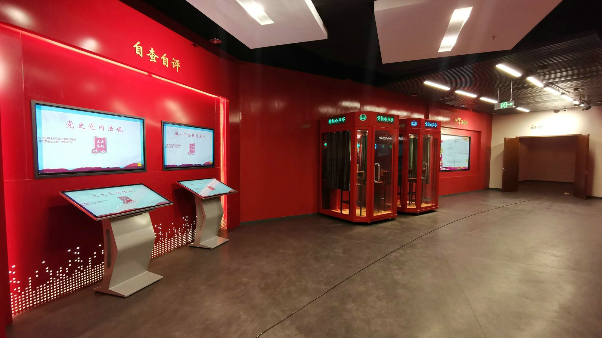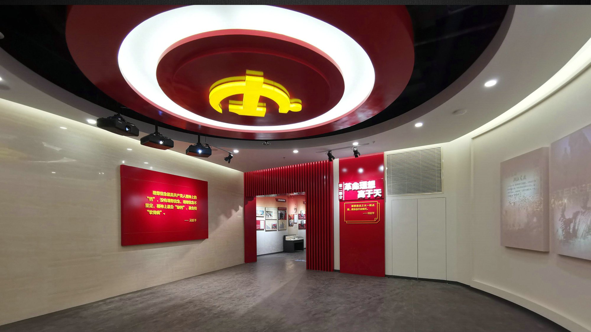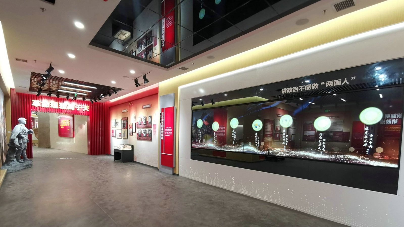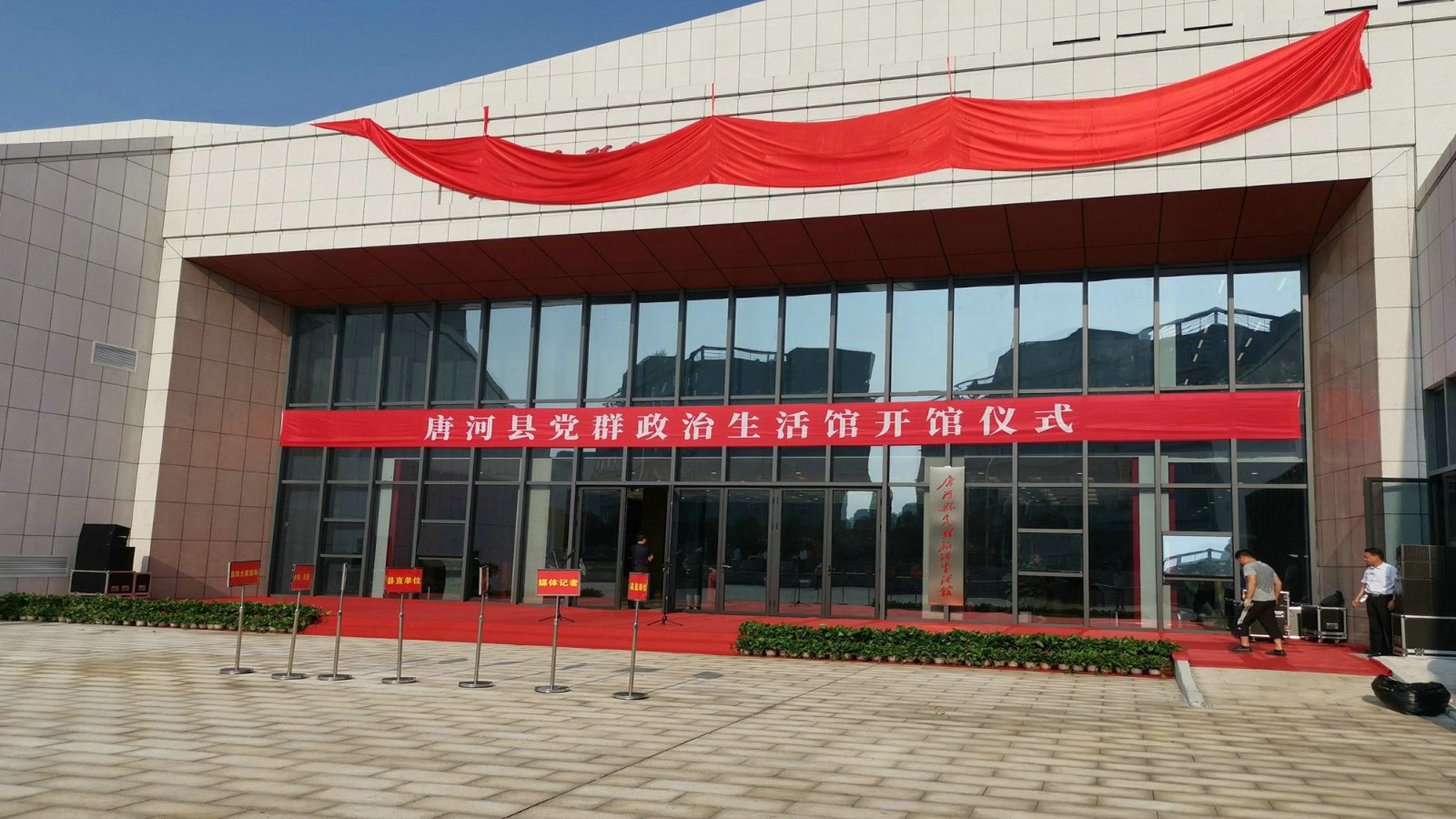 唐河县党群政治生活馆,是以中共唐河县委、唐河县人民政府为主办方建设的集党性教育、政治体验为一体的政治互动平台。布展分为上下两层,共2700平方米。布展以“一名党员进入馆内,接受一次完整的政治生活体验”为主线,根据党内政治生活的六大基本面划分六个展厅,每个展厅设一个专题,每个专题用不同的展示方式。布展风格庄重肃穆,具有殿堂般的仪式感,与同类展馆比,别具一格,让人眼睛一亮。
